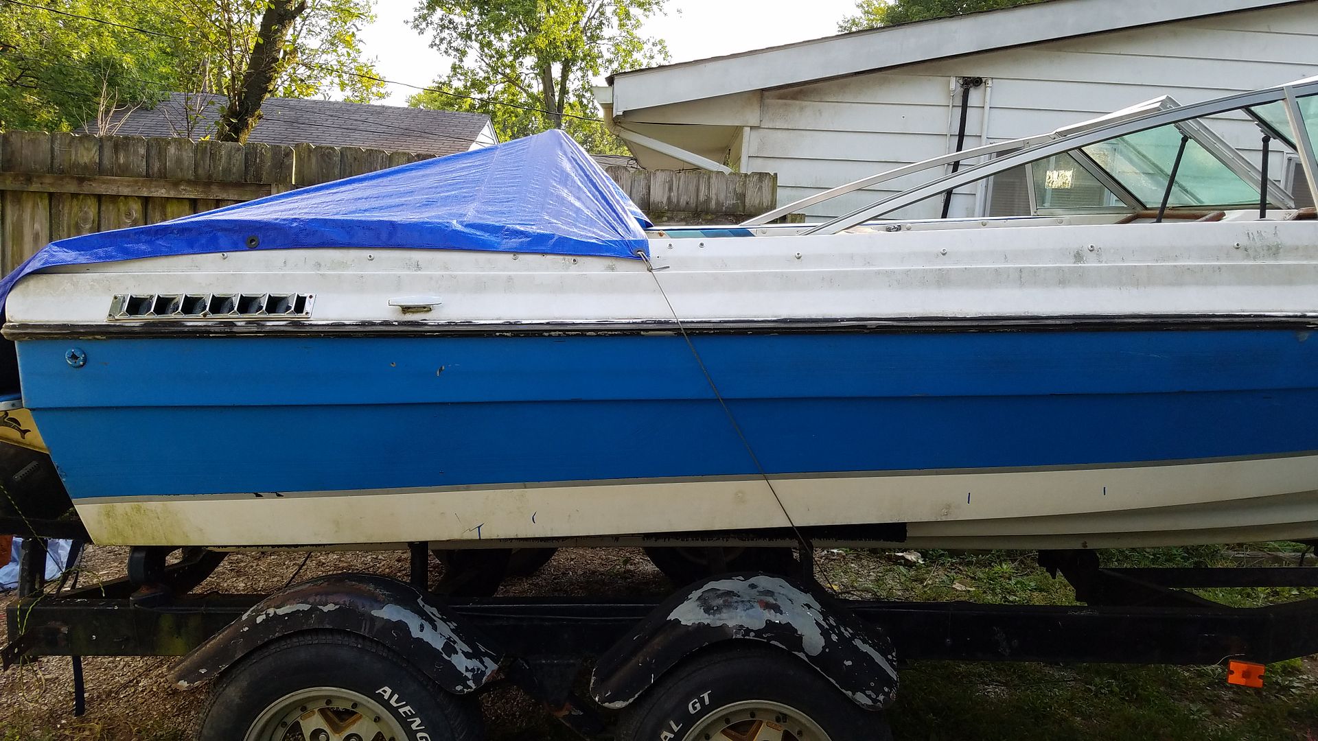 So I decided to buy a this old thing. I know it was a good looking little boat in her day, however her day past long ago. 500 bucks got me a 4.3 that runs, an alpha one drive that seems good, and a bunch of rot. I've always been one to dive in head first so that's what I'm doing. I've done lots of reading and watched many hours of video so I kinda have an idea of what I've gotten myself into. Plans are to pull the motor this coming Sunday and then start demo. The floor had a second layer of half inch plywood laid on top of it and was screwed and glued to what was left of the original floor I did go ahead and remove that extra layer today.