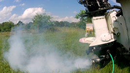 OK... saga continues. New powerhead, redone carbs. Engine sneezes at idle, crossflow line come off fittings (at green arrow, view from starboard), and a spray of fuel comes out of the line.