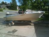 The metal badge on the side says its a Fleetcraft manufactured by Scott Fiberglass locally in Calgary, Alberta. However, I havent been able to find one similar in any pictures online. It seems to have a pretty unique shape.