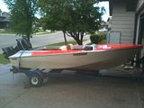Its 13.5ft long and came with the 50hp Merc in the picture when I bought it. That motor has reverse issues and the leg leaks but it runs great so that will become a later project. I threw a 40hp 1980's merc that I had laying around on it for now. Ive only had it out once last year just to make sure she floats and has no major issues, but I've been tearing into it quite a bit over the winter.