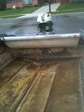 When I bought the boat the previous owner had removed the rotten stringers and floor so it was pretty bare. I had to do some grinding to level the surfaces out for the new floor and its FAR from perfect, but it has a floor now and is waterproof. I'll start a new thread in the restoration and project area, but I need this thing identified first!
