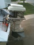 Anyone have any ideas? I can get more pics if anyone wants. There's no identification plaque on the transom or in the very very large splash well. I love the shape of the boat. Its short (fits nicely in my garage) yet has back to back seats and HAD a rear bench in the rear for lots of space. The transom is really short at 16" high.