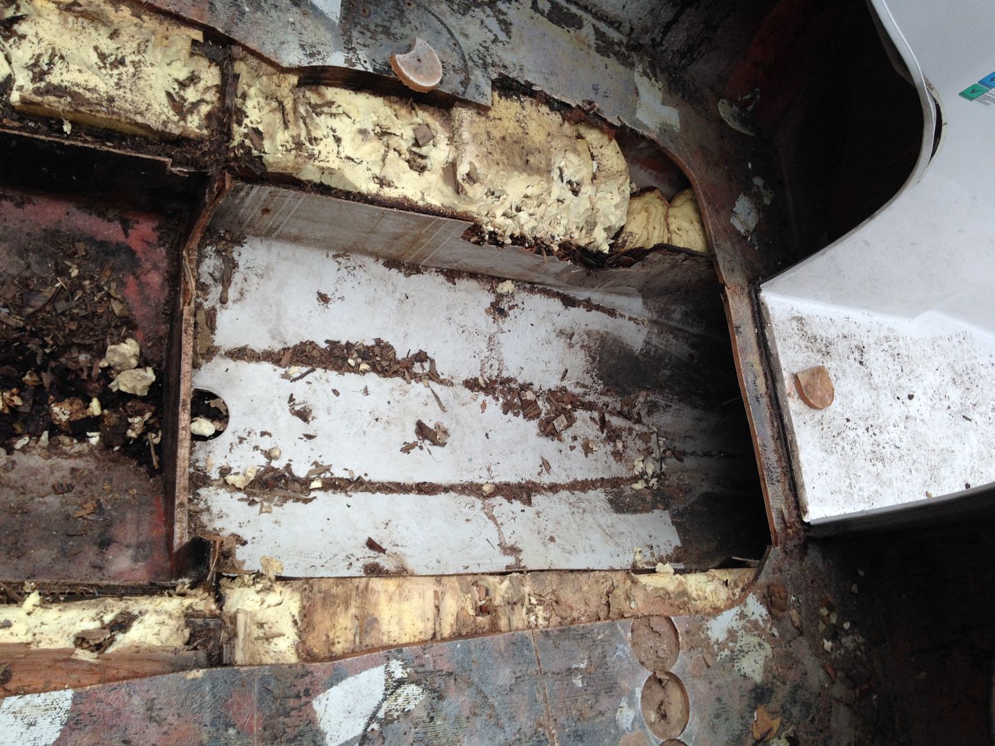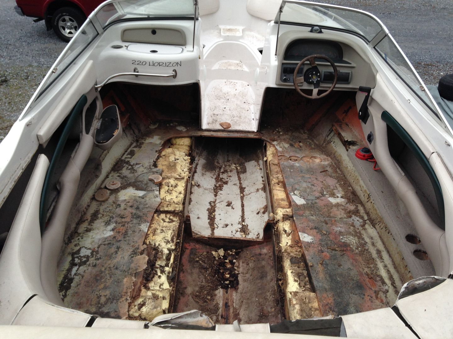 I was drilling small holes in the entire floor to make sure I didn't cut the stringers but it looks like the sitting water may have bypassed any fiberglass and foam straight into the wood. At least that's what I'm finding so far... any chance the stringers are completely dry and usable?