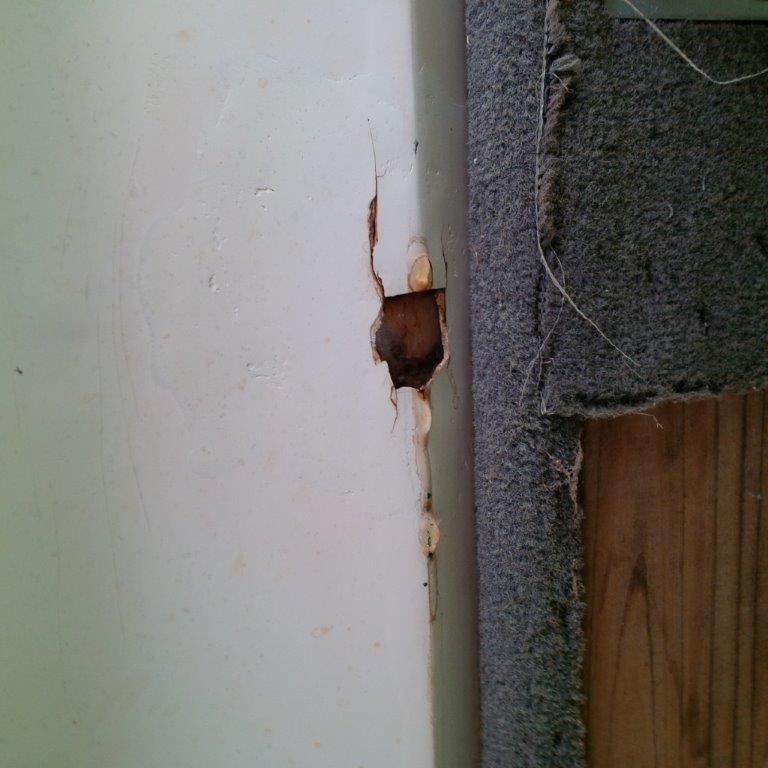2. There is a large hole in the hull, by large I mean probably 2 inches by 3 inches. The beige coat is gone but I feel what I think is resin or fiberglass, smooth as could be.