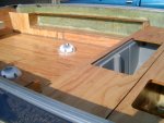 Today I got some easy stuff done. Hatches sealed down, screws bedded in, forward locater installed/forward nav light installed/trolling motor installed and the stereo too.