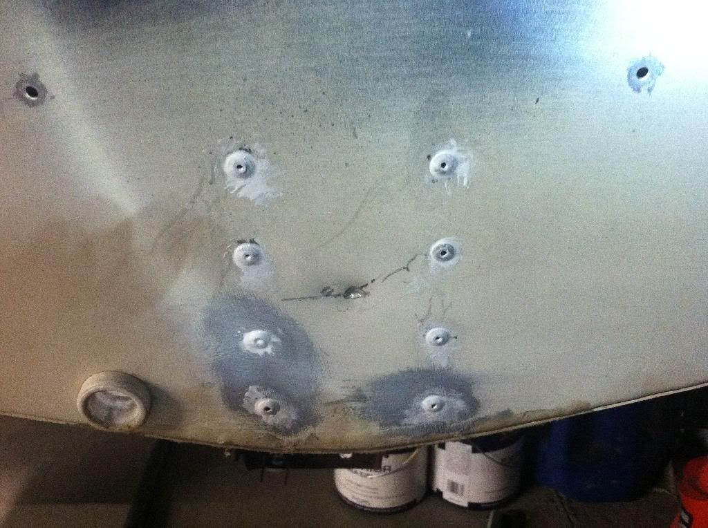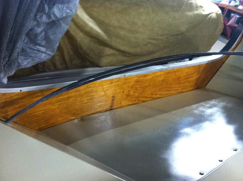 On the splashwell, since you are doing some new rivets on the knee brace, I would make a 90? angle to fit behind the separation and put a couple of rivets on each flat. I think that's a sealed seam anyway, but the added angle will stop the spread. And maybe when the brace is reattached and the transom wood is in place and secure, the gap may close on its own. I'm fairly certain the loose brace caused the split.