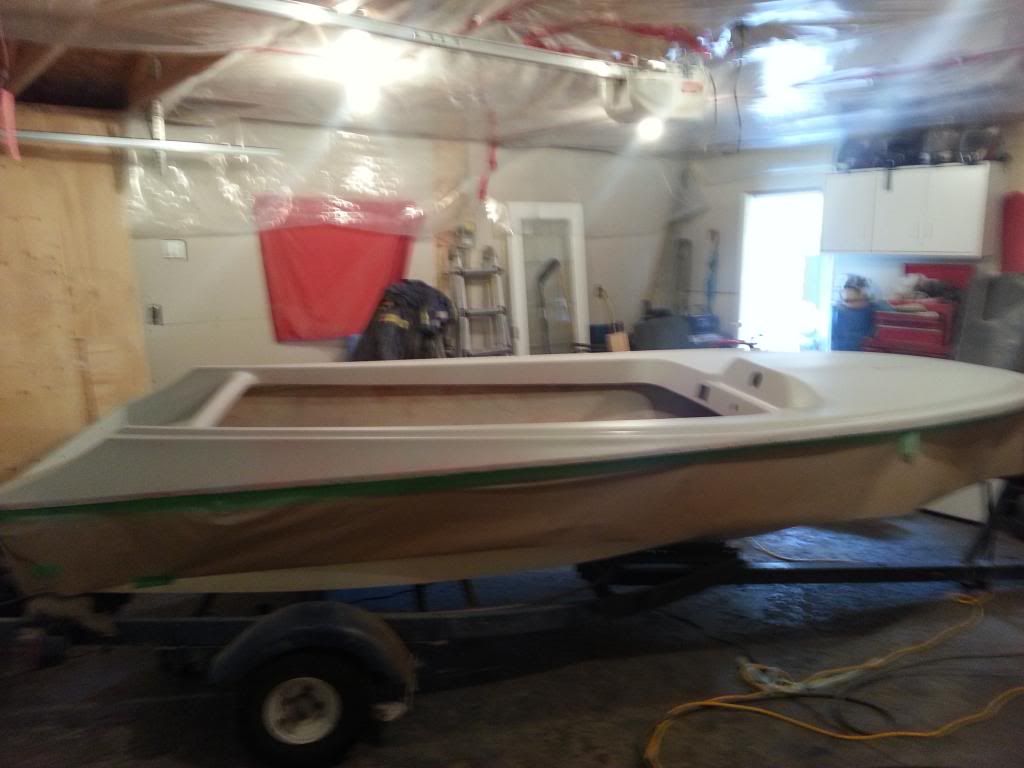 And finally, a blurry overall picture. Sorry the picture sucks. I was in the far corner of the garage and still couldnt quite get the entire boat in the picture so I was holding it above my head to try to get it all in.