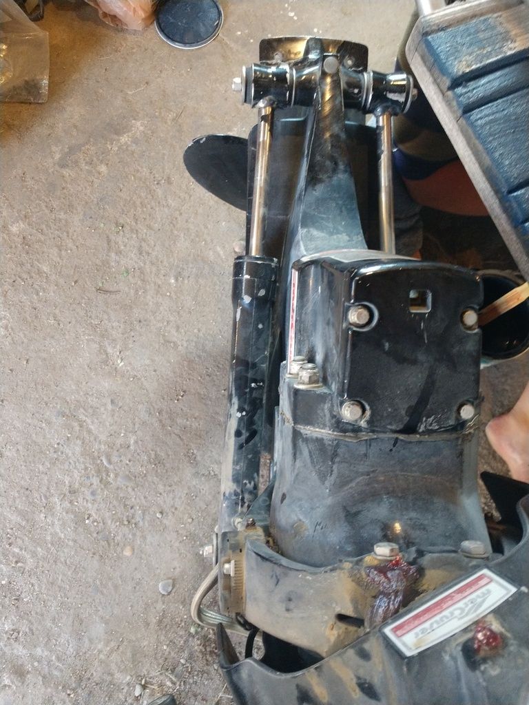 with the drive up, and water coming in is most likely the shift cable bellows. i dont think that hole to the right of the water pipe goes through the gimbal. did you actually see water coming from that hole before you pulled the boat?